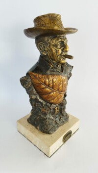 Buste hommage à « Don » Alejandro ROBAINA, figure emblématique des Habanos. Dessiné par Nelson ALFONSO, sculpté par Ingeborg GAZI HERRERA et produit en 2011 à 91 exemplaires pour GOLDEN AGE Ltd. 91 faisant référence à l’age d’Alejandro ROBAINA à sa mort.
